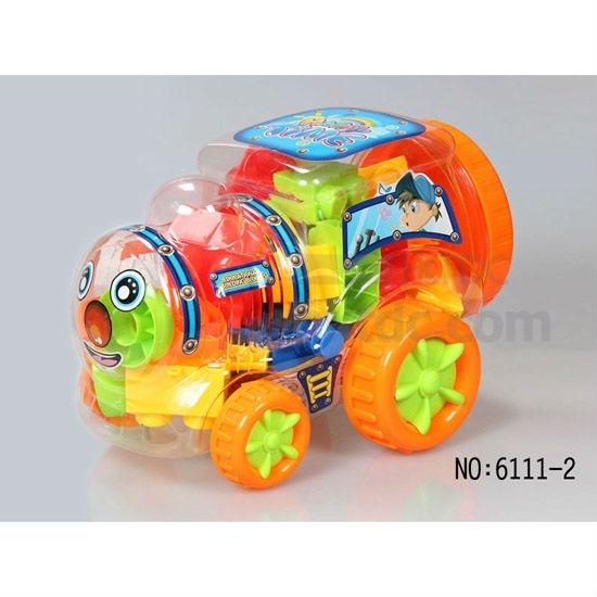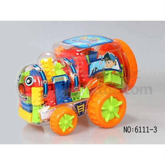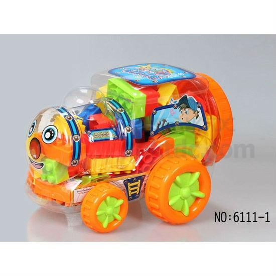 - With brightly painted building blocks and instruction for building, packed in lovely car shape
