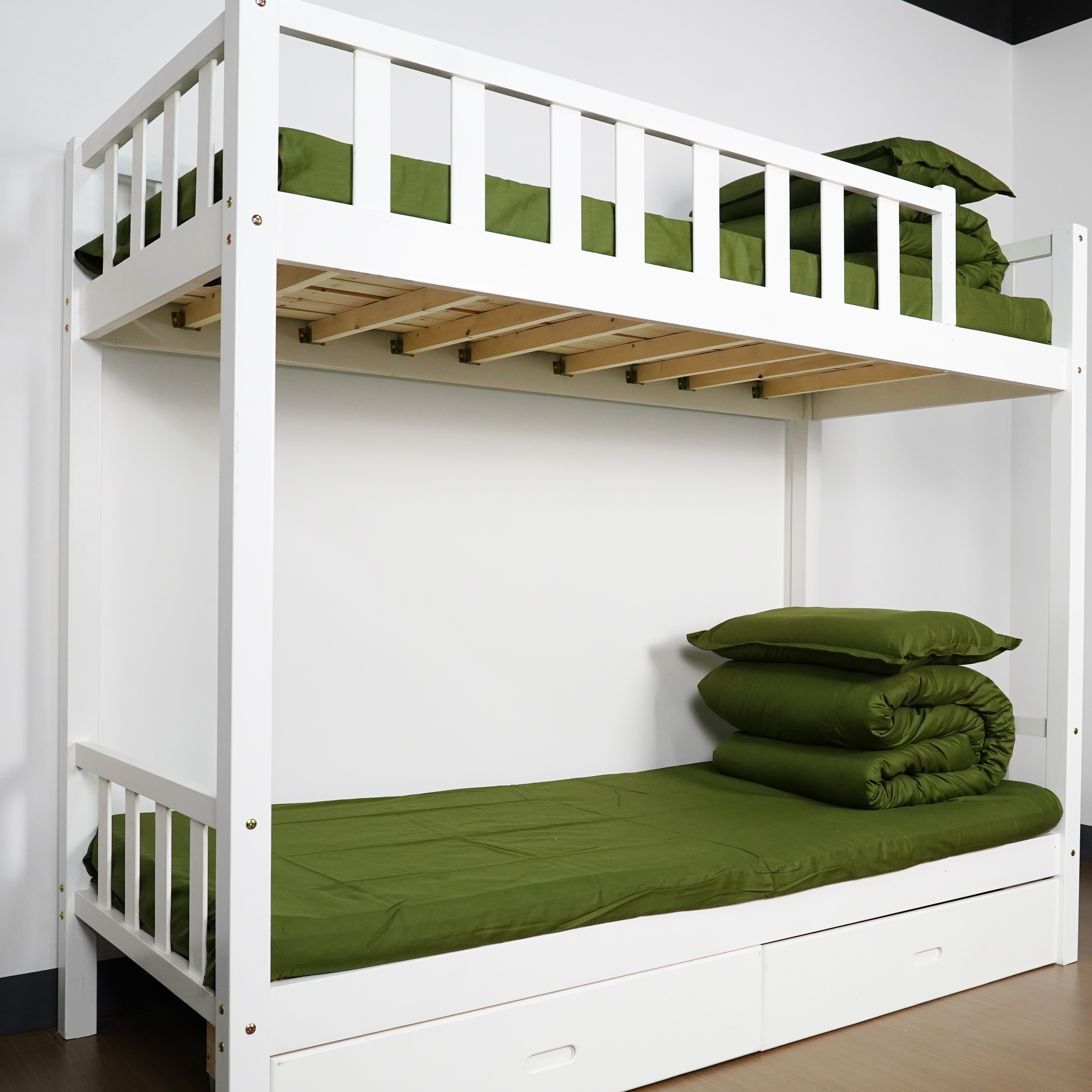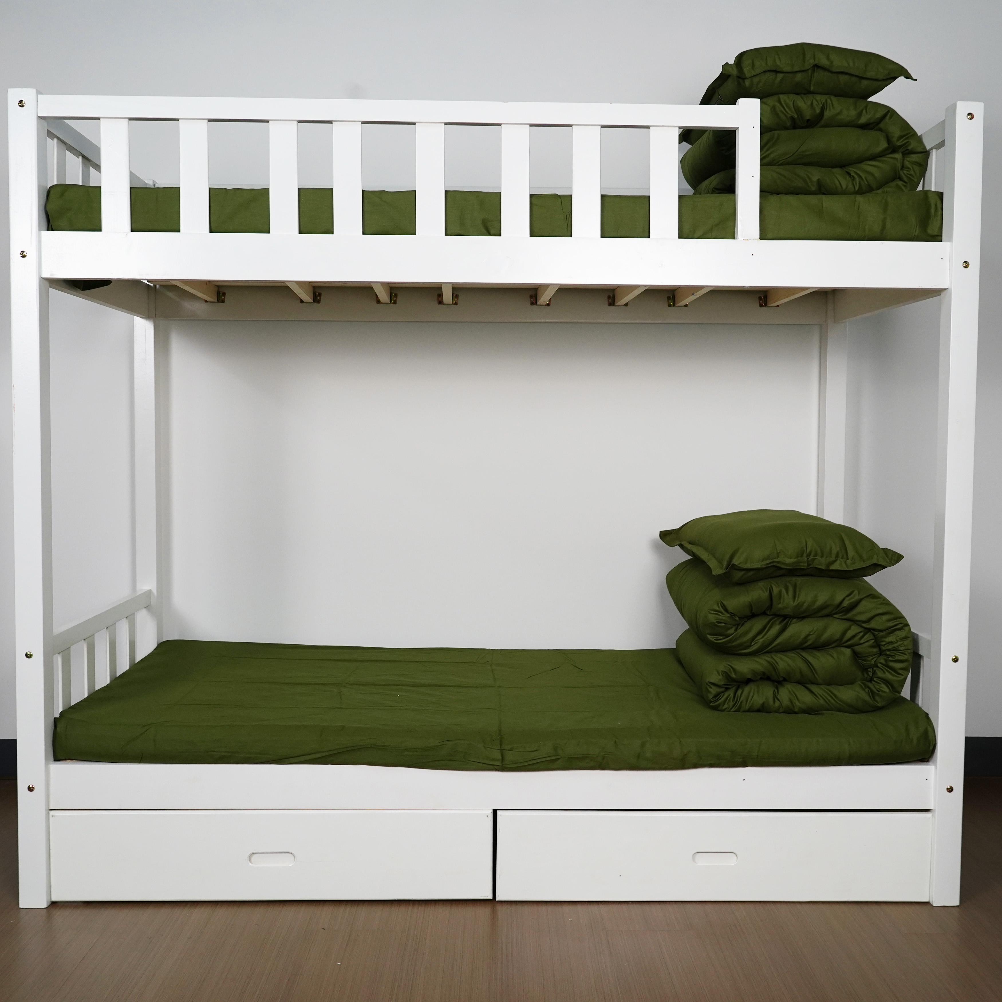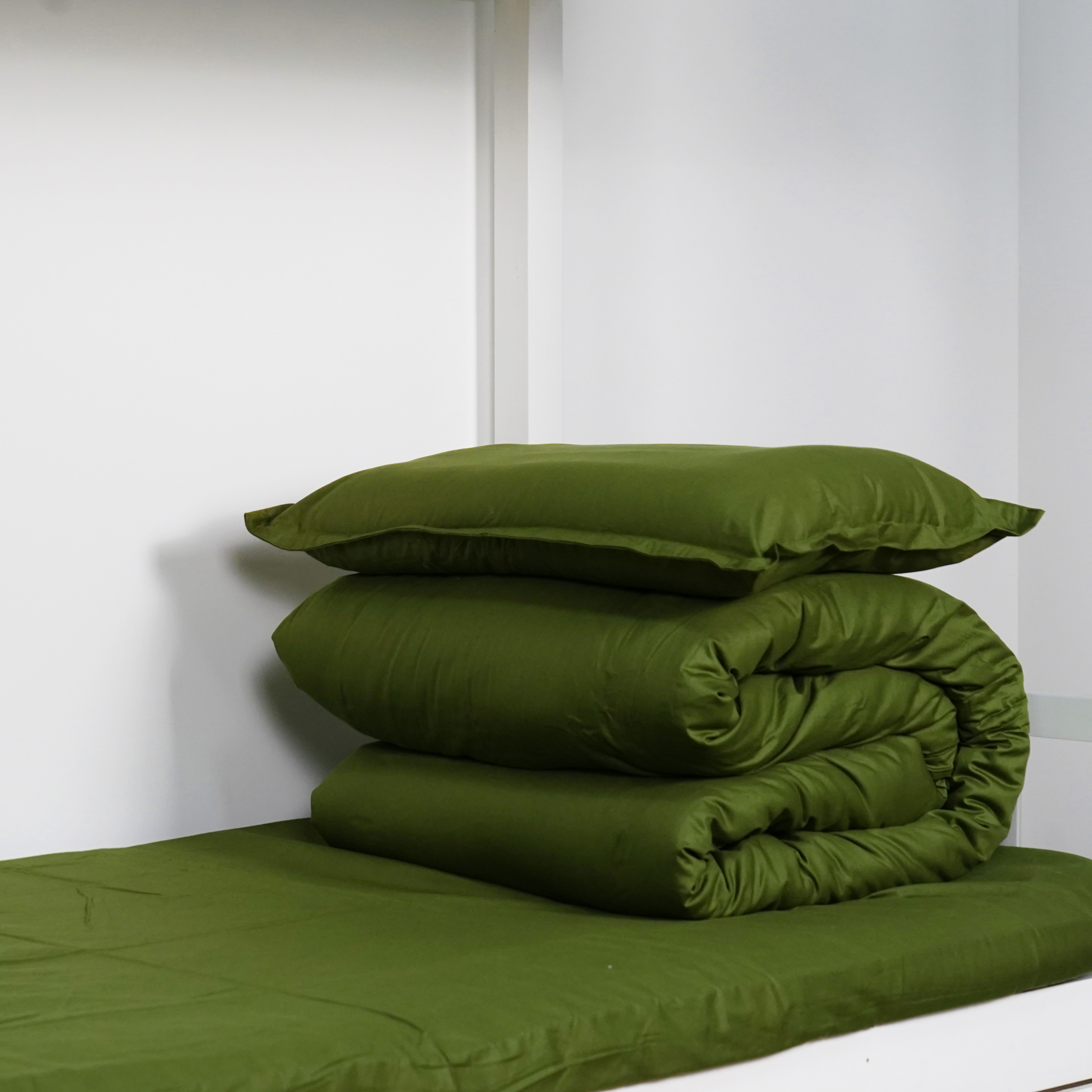 Training four - piece set, in military green color, made of pure cotton, and the size can be customized according to the size of the dormitory.