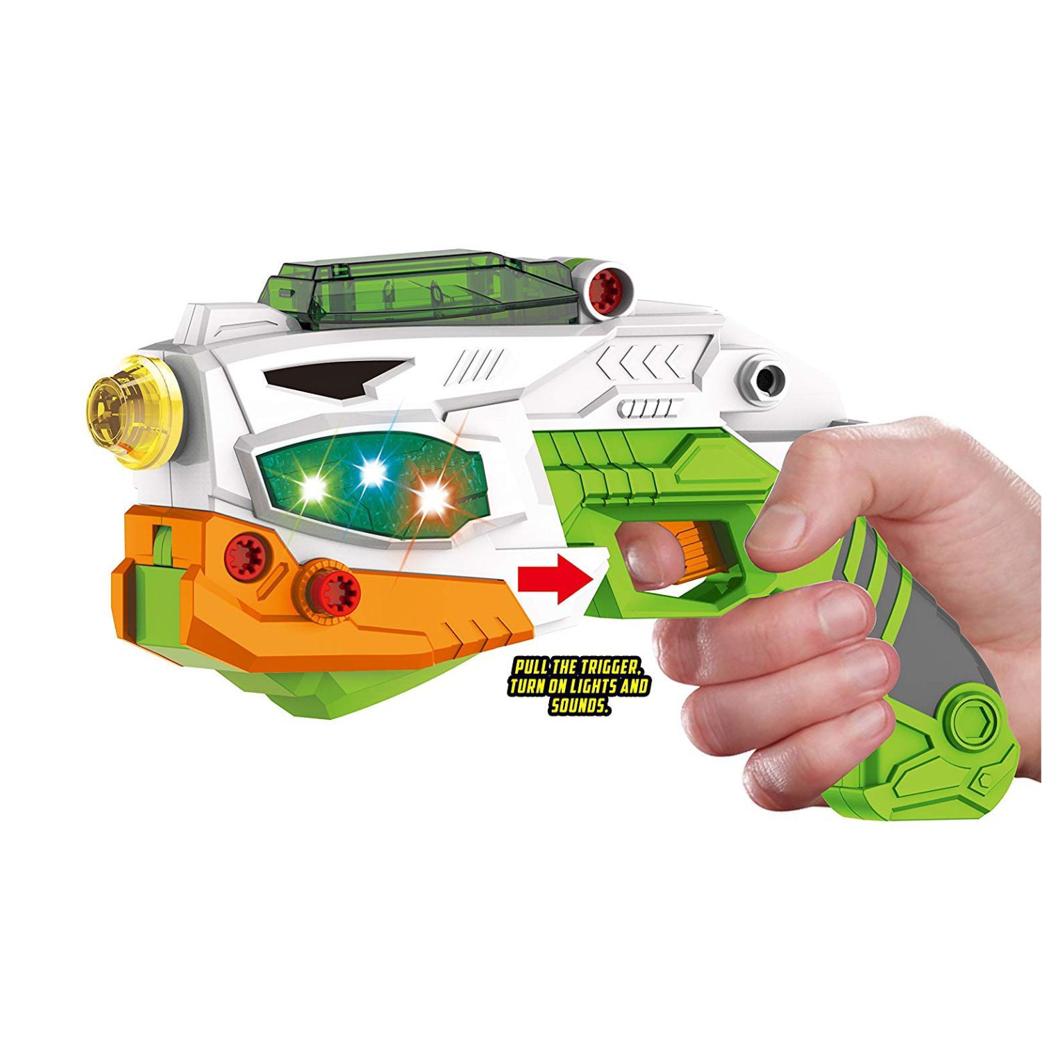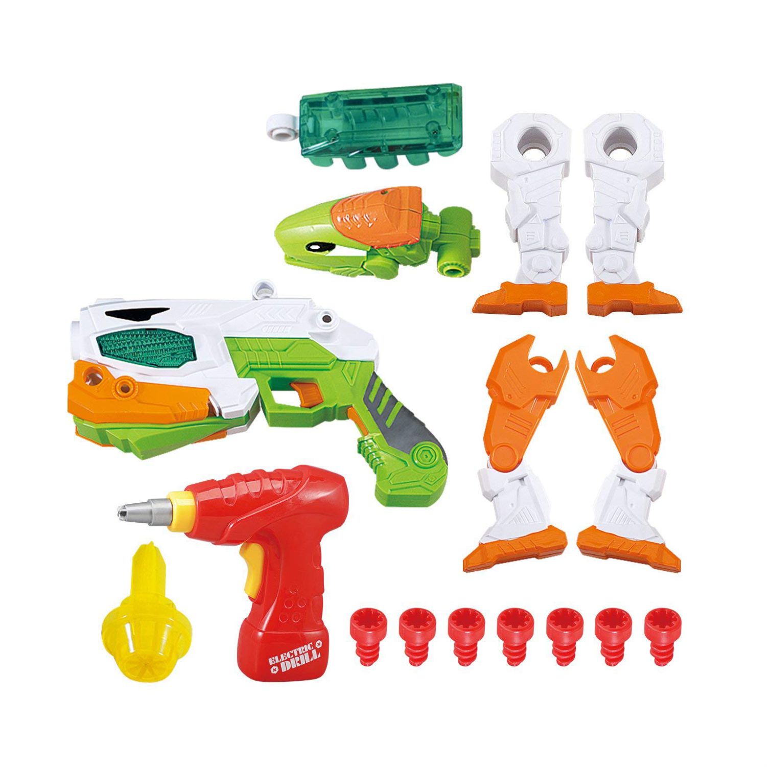 Realistic sounds and lights: press the triggers, this construction toy will make different sounds and colorful light effects