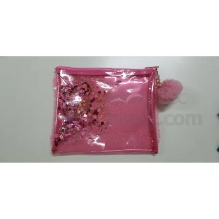 Transparent Pink Plastic Sundries Bag with Pom Pom
