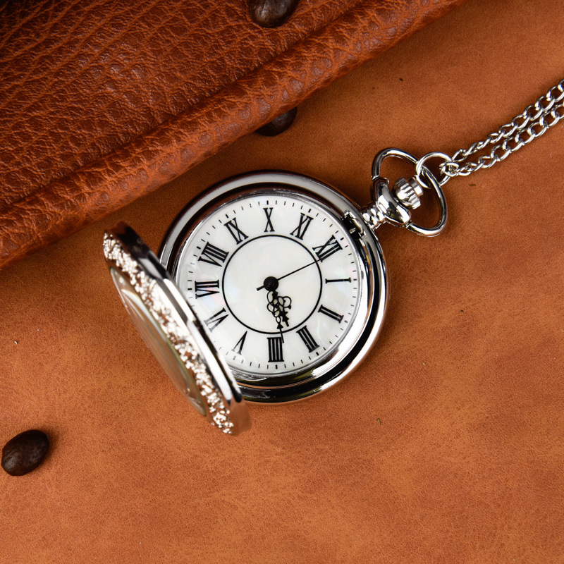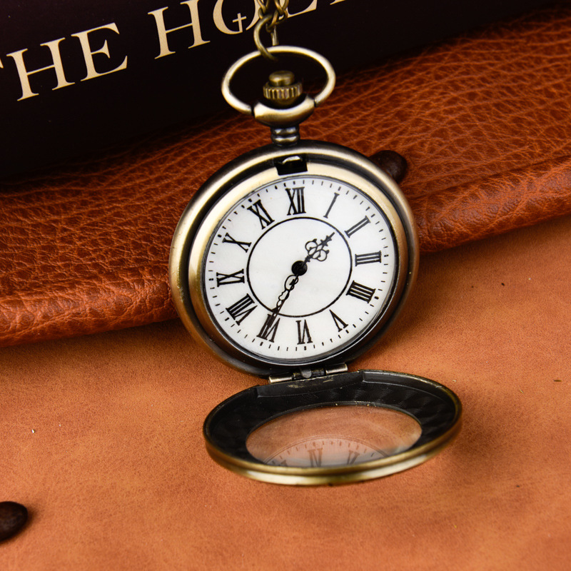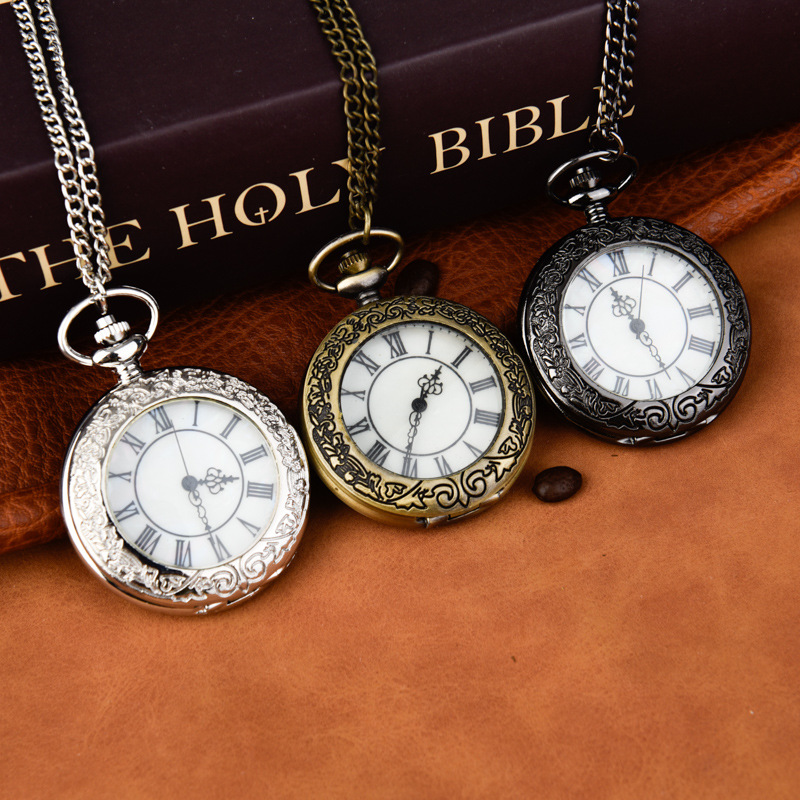 Transparent glass lace scale pocket watch quartz pocket supe clamshell Rome watch necklace