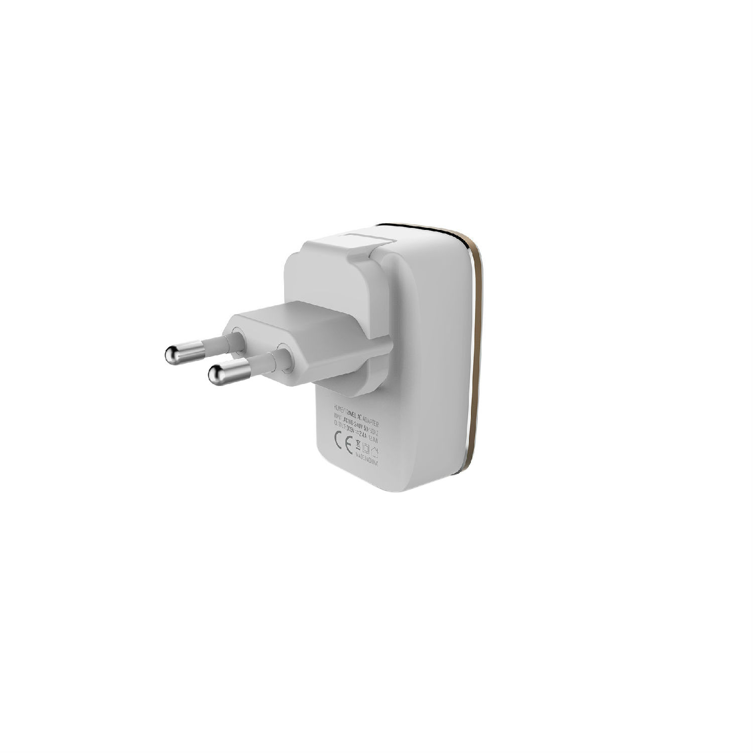 This travel charger comes in a compact rectangular shape and allows you to charge your electronic devices in other countries. It offers multiple protection function and has a white LED to indicate the charging status. The travel charger has two USB ports for charging and provides stable power supply.