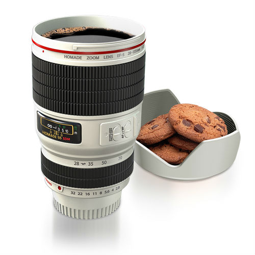 • Fancy yourself as bit of a photographer? Boldly display your photo fanaticism by using this quirky new mug. It looks and feels exactly like a real camera lens and will soon become an essential part of your photographer's kit bag!!