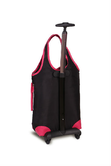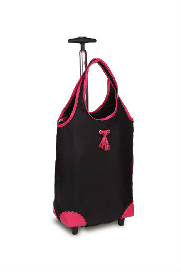 This is for traveling and shopping bag that is made of waterproof nylon, PU trimming, waterproof PVC lining fabric. It is detachable for easy cleaning and storage. The aluminum tube trolley ensures a durable and lightweight structure.