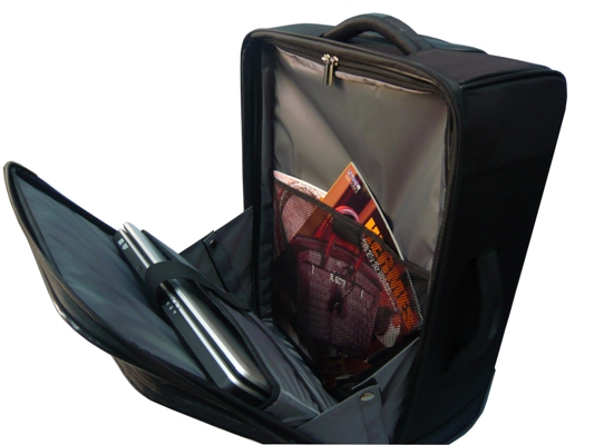 This trolley is your perfect companion for travelling. It features 1 main compartment with crossed straps to secure your clothes and other personal belongings. Another compartment with mesh pocket, located between the front pocket and the main compartment, is designed for safeguarding your laptop and related accessories. Lastly, the front pocket is specifically for small and tiny items such as pens and note pads.