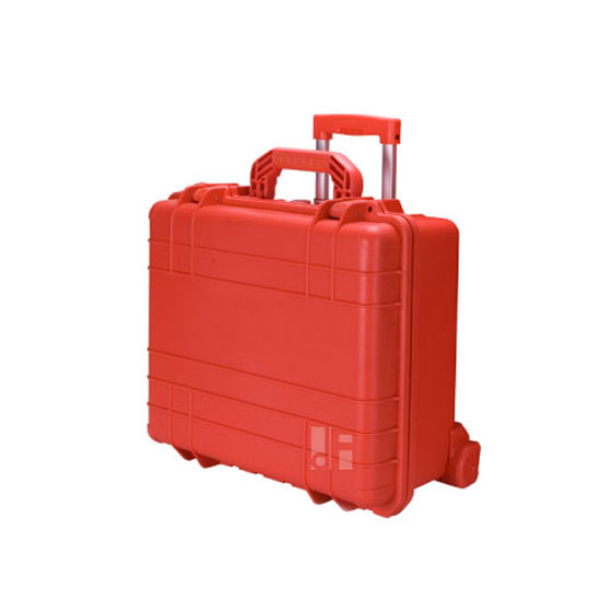 This is a PP trolley case that comes in bright red for an eye-catching look. It features durable replaceable wheels for users’ convenience. The water-resistant construction offers enhanced protection for the contents.