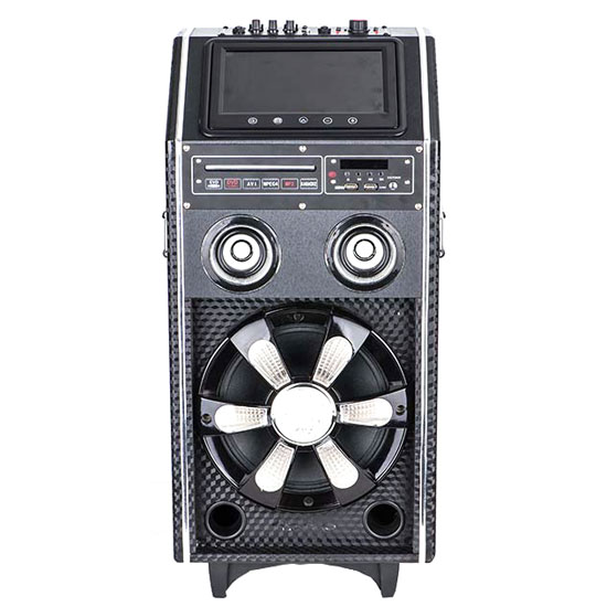 This trolley PA system comes with a sophisticated design. It is compatible with most audio inputs on the market. It is fitted with a large digital screen to allow easy operation.