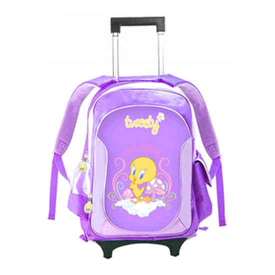 This is a school bag with a trolley design for easy movement. The bright purple appearance with cute Tweety Bird patterns delights little girls instantly. The high-quality material promises an extra-long service life.