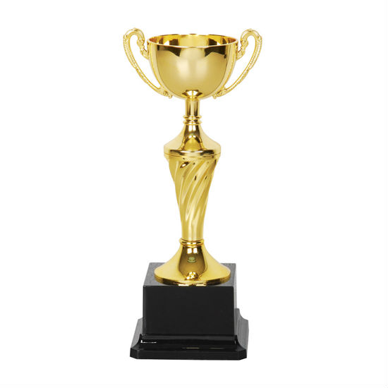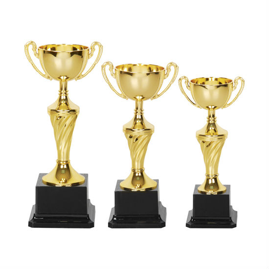 Featured here is a collection of trophies created in an extravagant design. The trophies are made with a loving cup at the top with swirl engraving details on the riser for an extra touch of opulence. Rounded off with a shiny finish, these are excellent awards for winners at all kinds of competitions.