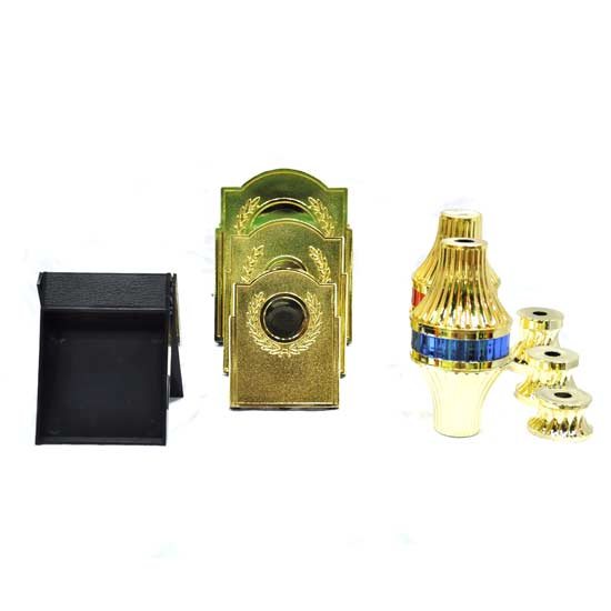 Featured here are different essential trophy parts for assembling a trophy. They are all made of plastic for a durable construction. These quality trophy parts are essential for completing your trophy.