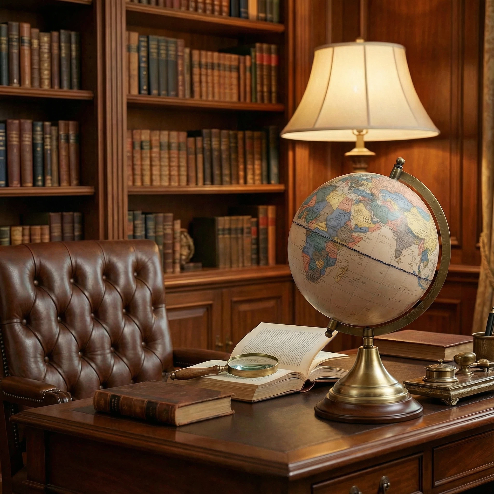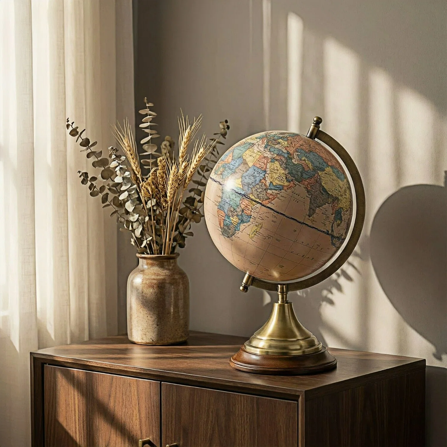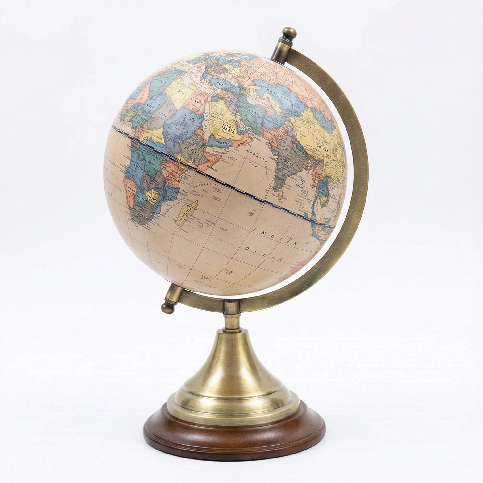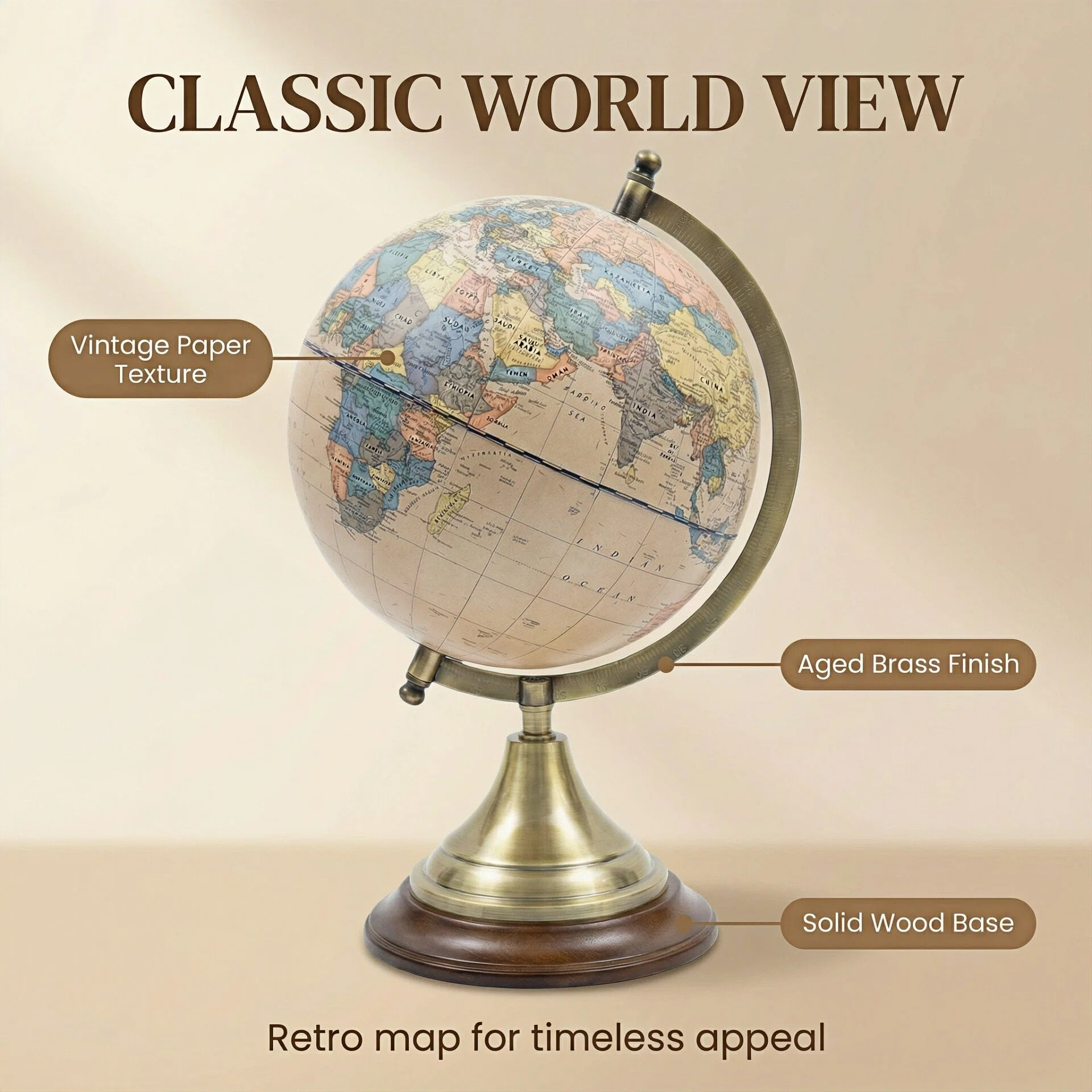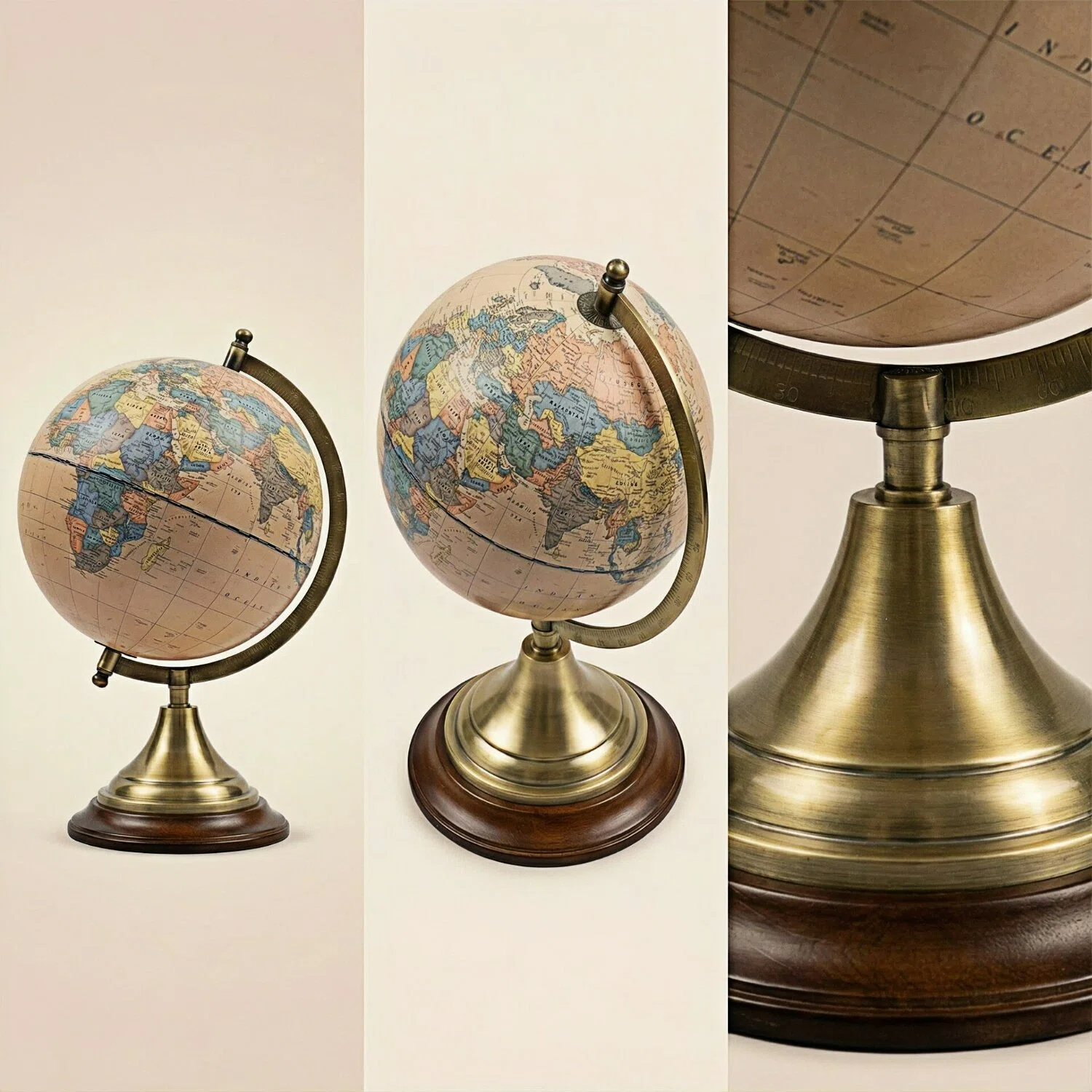 Trophy-shaped base design, metal bracket, paper map globe