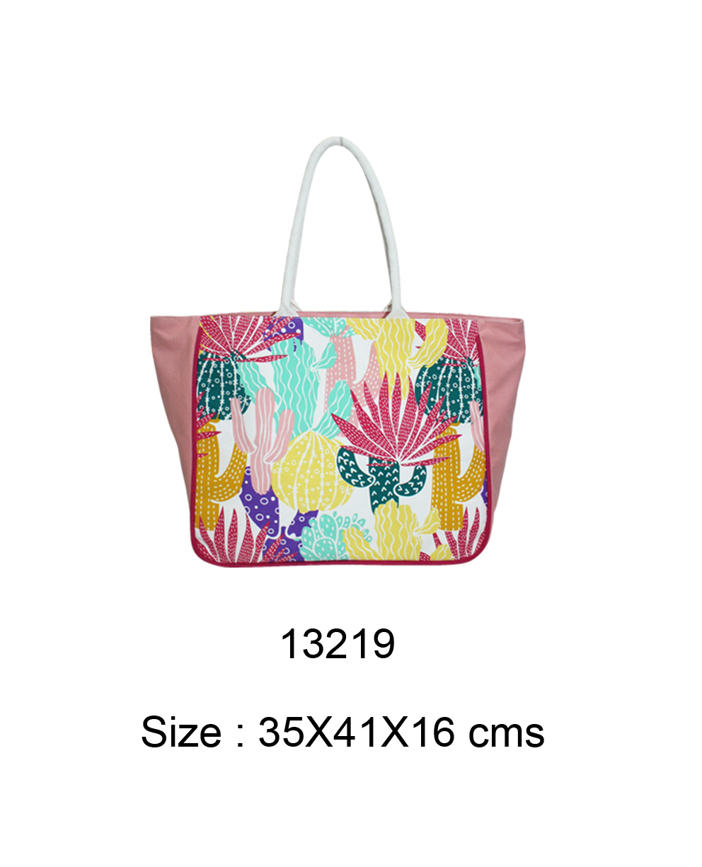 10 ozs White Laminated Cotton with 10 ozs Dyed Cotton tropical beach bag with 60 CMS Rolled Tape Handles.
