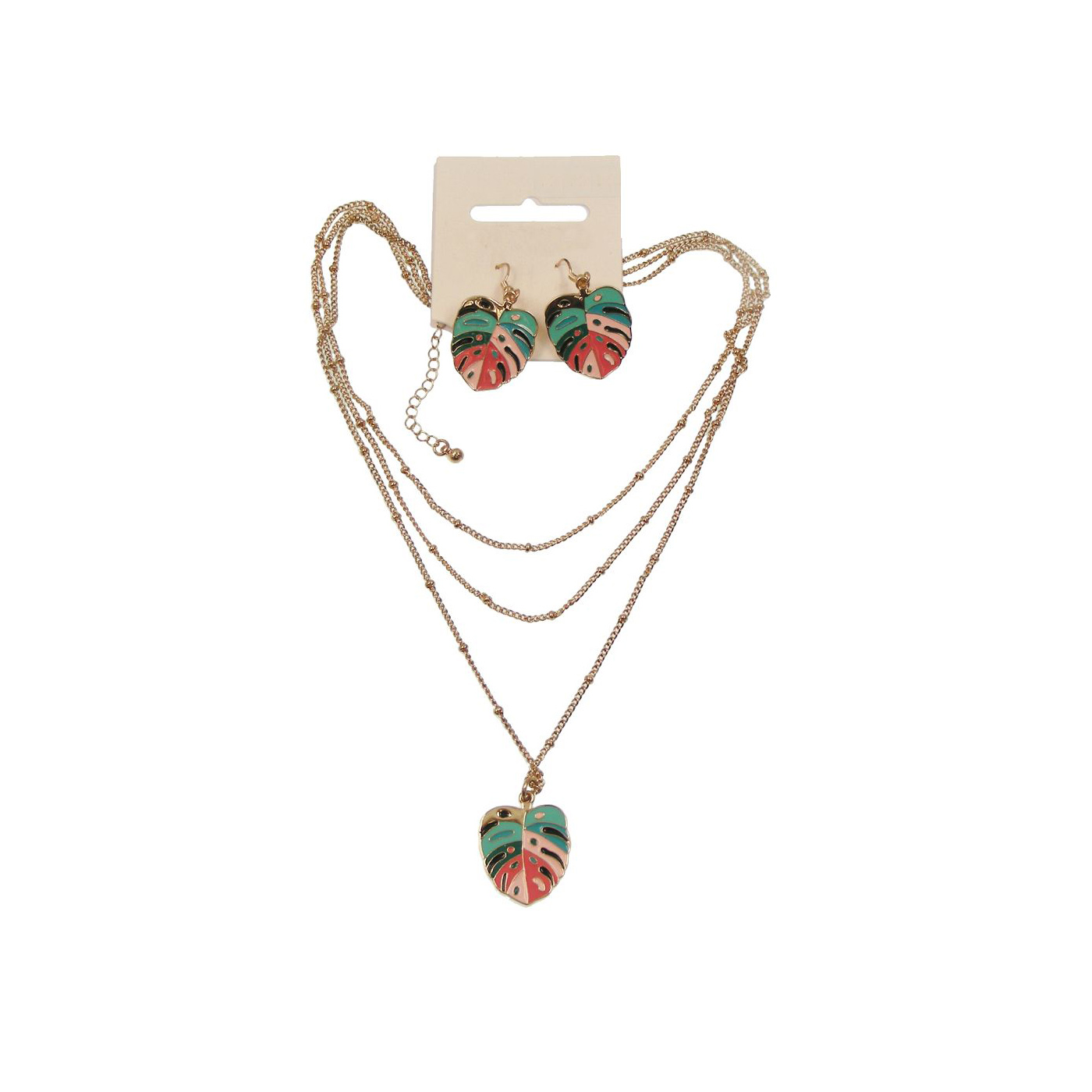 Tropical Monstera Leaf Layered Necklace & Earring Set