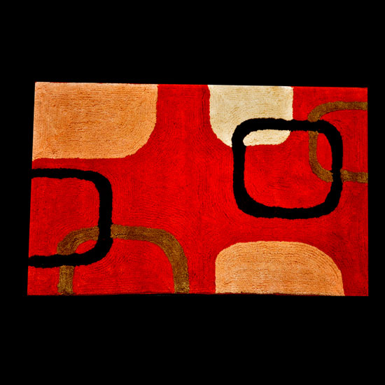 As shown is a bathroom mat coming in a rectangular shape. The soft tufted surface features excellent water absorbing power. The colorful abstract patterns add delights to bathroom settings.