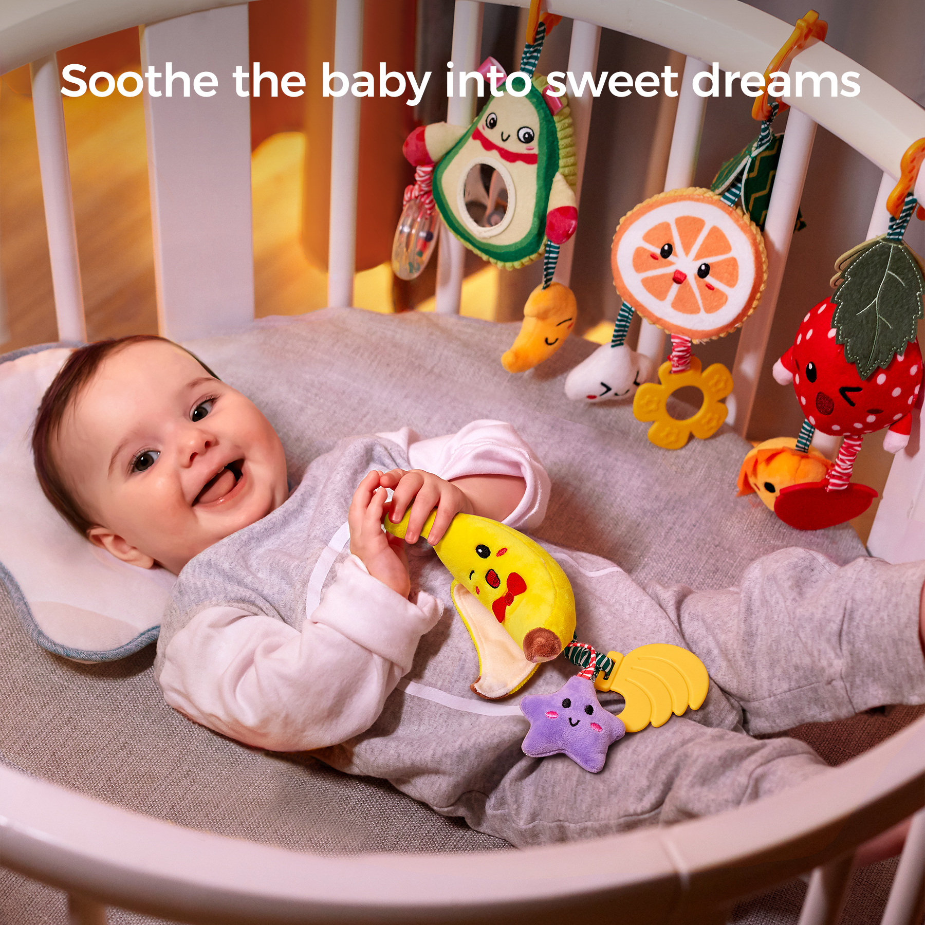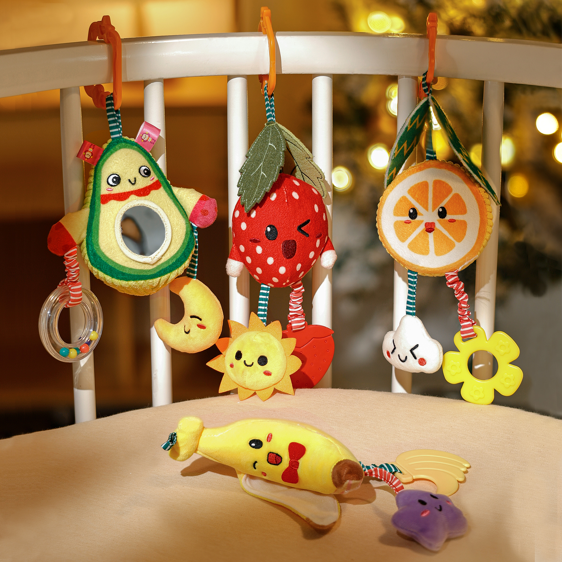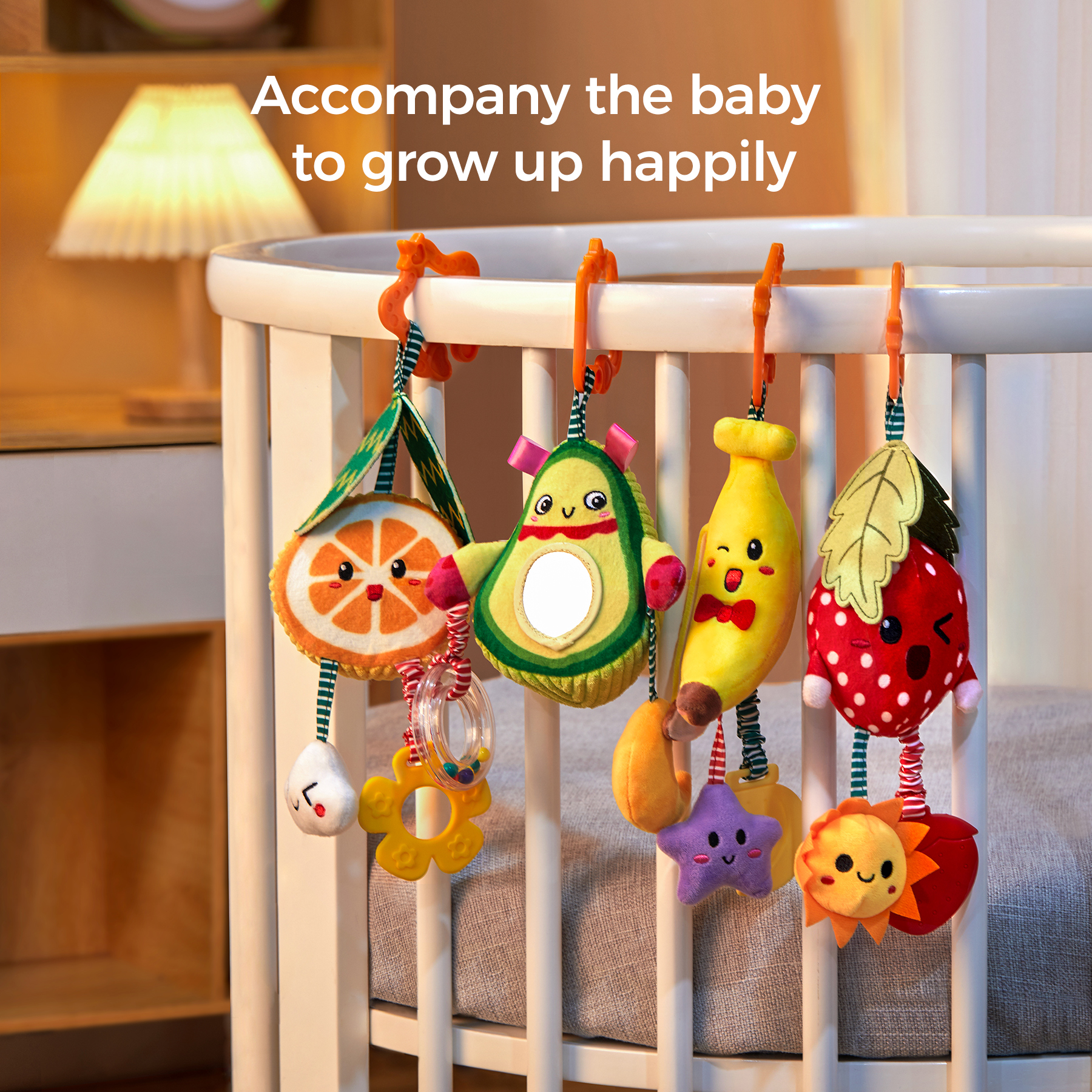 · Stimulate Visual: Lovely plush fruit rattles with vivid expression, every stroller hanging toys can attract baby's attention easily and stimulate their visual development.