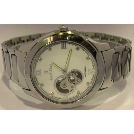 Showcased is a tungsten analog watch with a skeleton face that displays a more sophisticated look. The well-polished tungsten case and watchstraps are elegant and sturdy. This precise and clear analog watch is a great accessory for a trendy person.