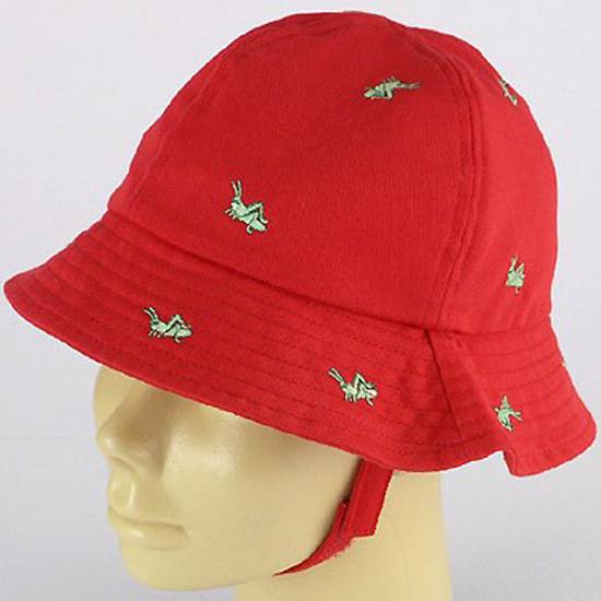 Brought to you is a nice-looking brim hat in tinge of red for added femininity. The brim hat showcases several embroidered grasshoppers on the surface and is coupling with a chin strap to bring secure wearing experience. Surrounding the rim is a brim with hidden stripes, suggesting a sophisticated style.