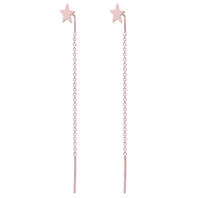 Twinkling Star Rose Gold Plated Chain Threader Earrings In Silver 925