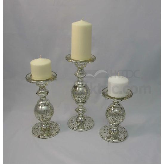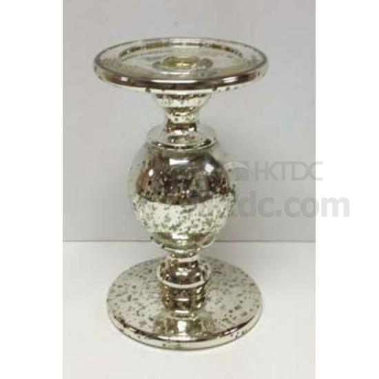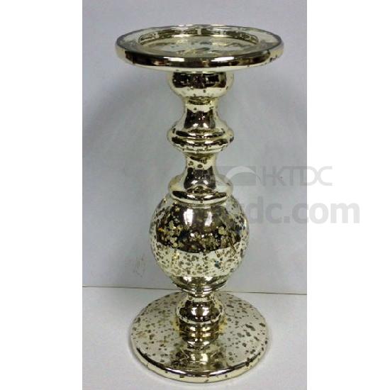 Glass candle holder with chrome plated effect
