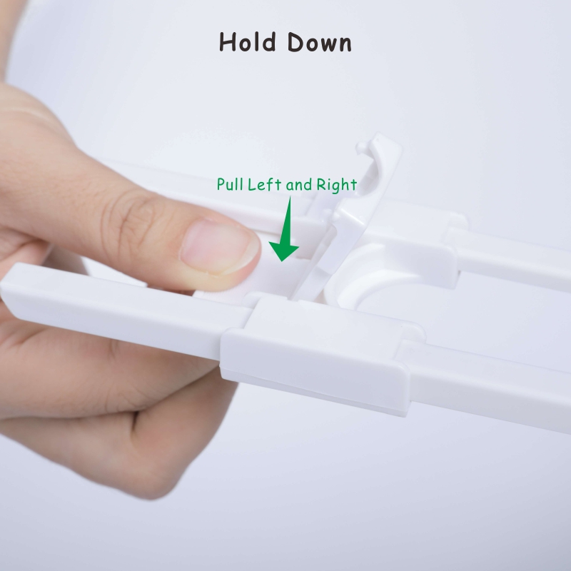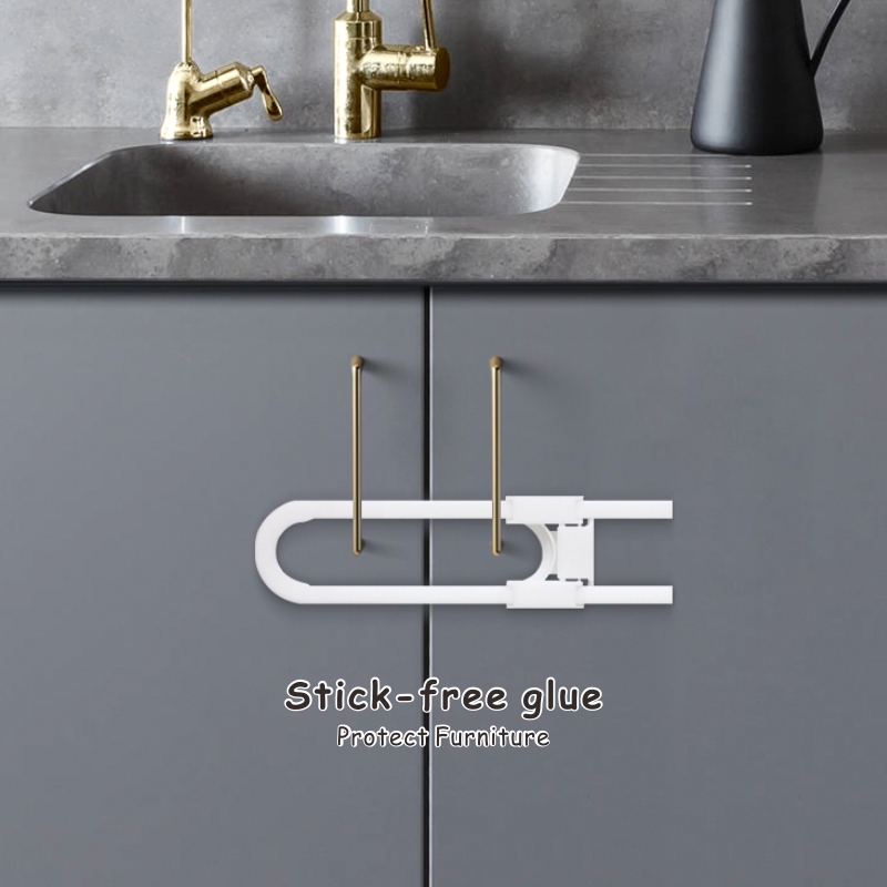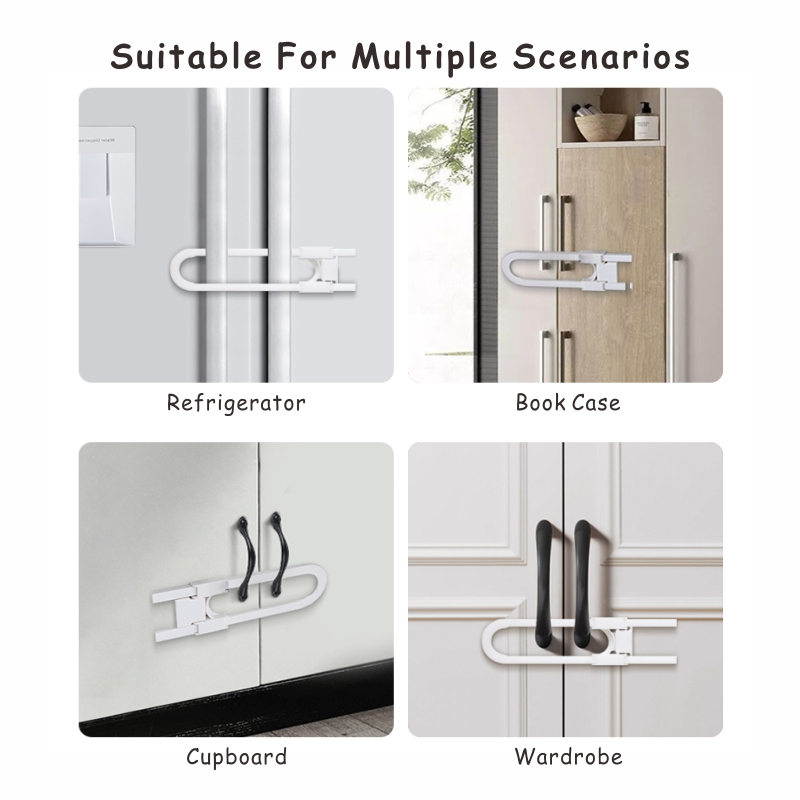 ADJUSTABLE LOCK WITH MULTI PURPOSE USE; Prevent your little ones from reaching to kitchen cabinets, side by side refrigerator, cupboards, storage doors and make them stay out of trouble. Can be adjusted to the desired length up to 5 in. Suitable for all kinds of mushroom shaped round knobs and D-shaped or annular handles. Reusable and convenient lock exactly meets your need, safely keeping curious babies and active pets away from cabinets. Use them in kitchen, bathroom, pantry room, bedroom etc.