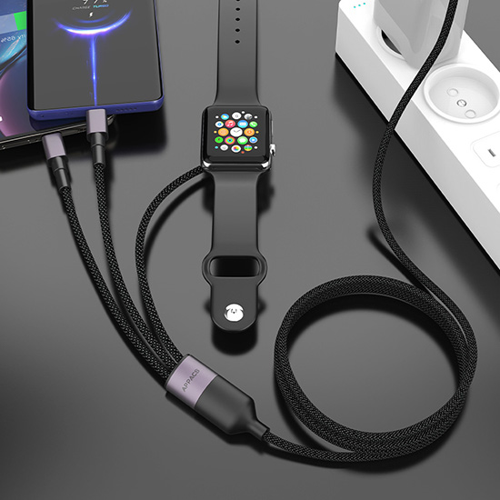 3 in 1 function, can use for wireless watch charger/Lightning/Type C devices.