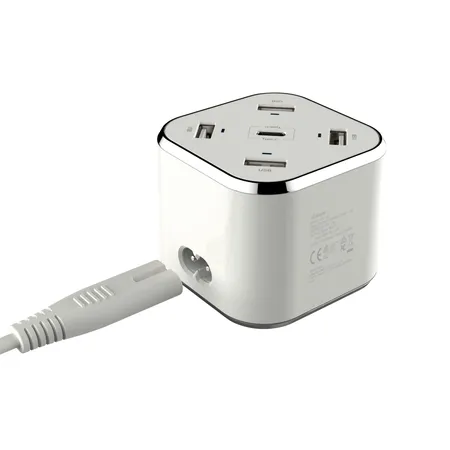 Huntkey usb charger multi port Offers one type-C USB charging port (3A) and four type-A USB charging ports (2.4A), which allow you to charge your different devices at the same time