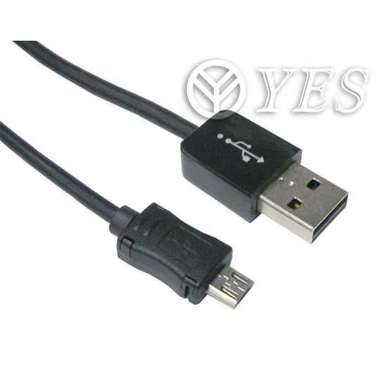 Featured is a USB connection cable. The cable has one mini-USB plug and one USB plug, connecting electronic devices to personal computers and laptops. The cable is nicely crafted to ensure high durability.