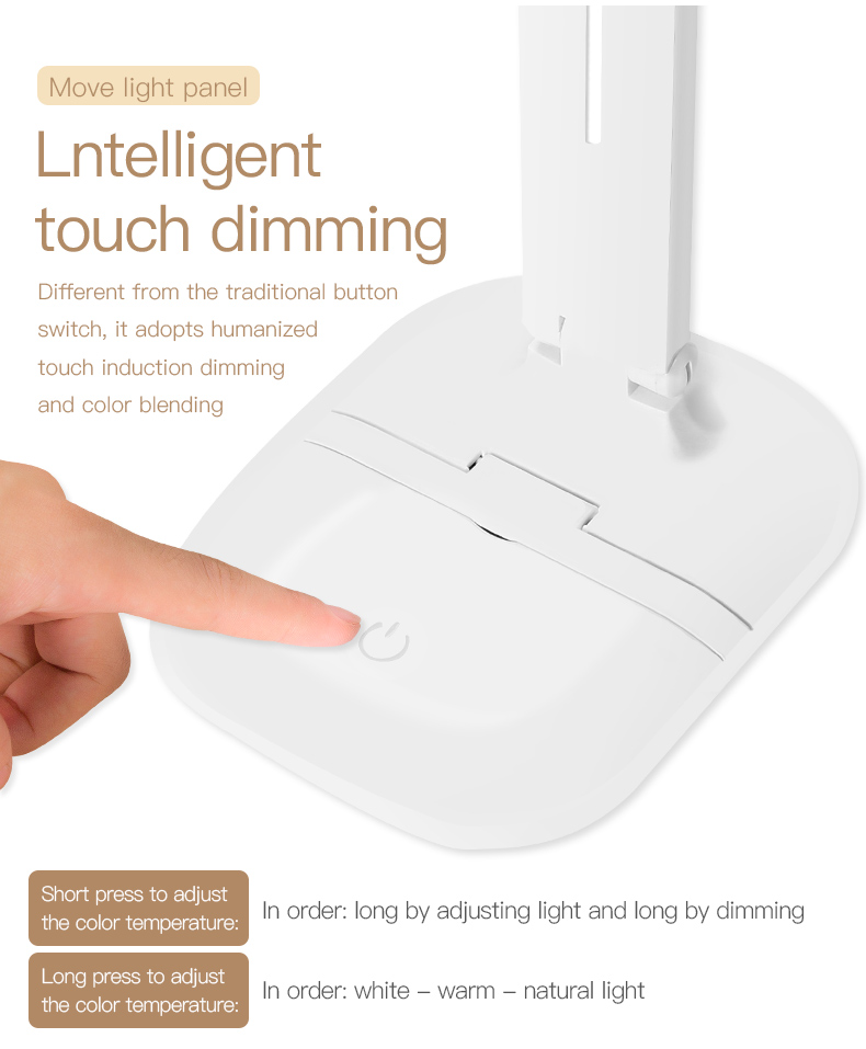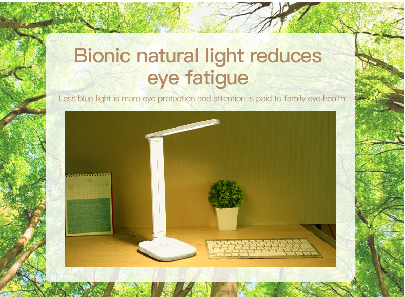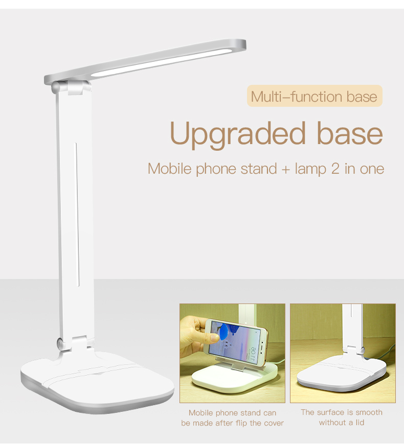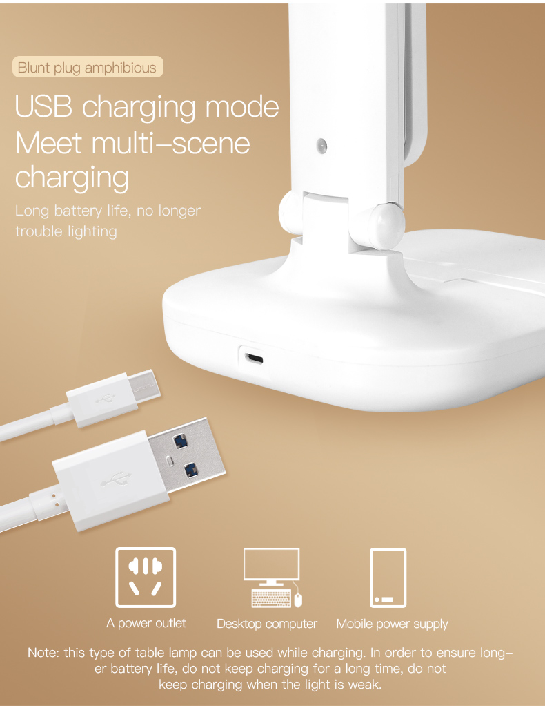 LED warm white and white dual color eye protection desk lamp rechargeable, Li-Ion Battery Power Adapter, USB anddroid port, compatable with the Android mobile phone charger