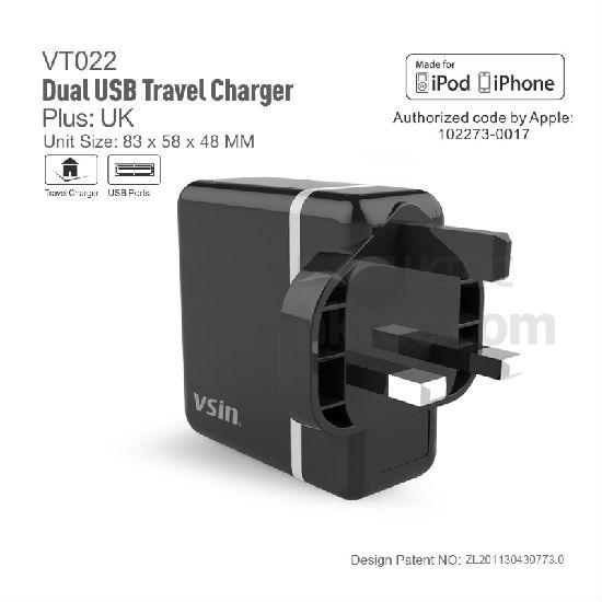 Item Type: Dual USB Travel Charger.