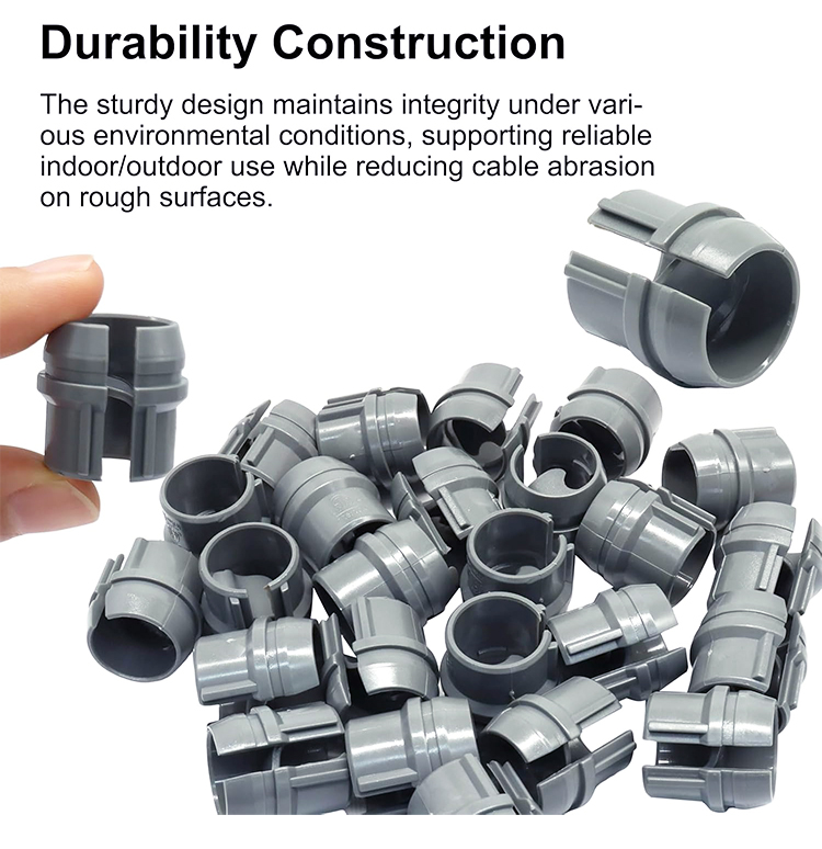 Adopting high density engineering plastic material, the clamp owns strong and long-lasting structural strength. It keeps good shape under long-time extrusion and friction, effectively reduces abrasion on cable surface and protects inner wire cores from damage caused by rough hard surfaces.