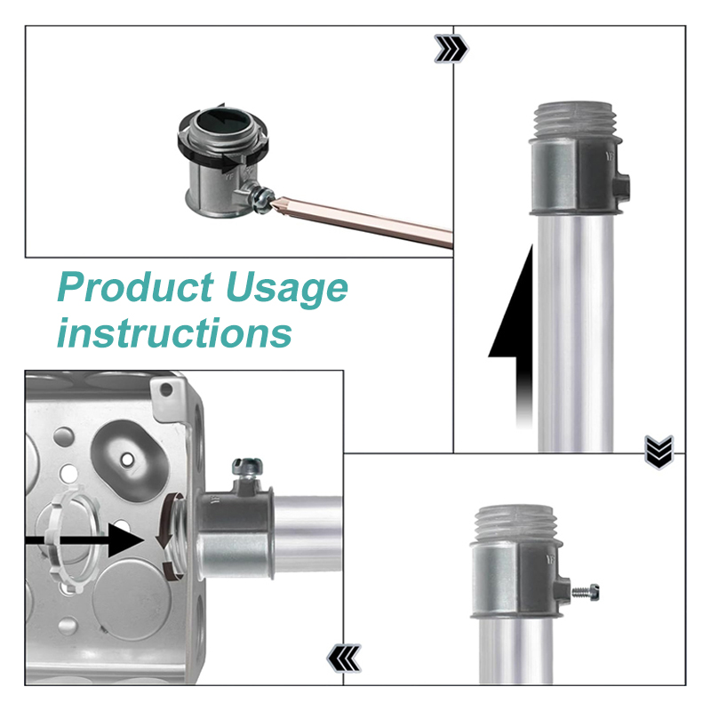 - Box Connectors (EC111/EC112/EC231/EC232): Used to connect conduit directly to electrical outlet boxes, junction boxes, or enclosures. Available in 1/2" (EC111, EC231) and 3/4" (EC112, EC232) sizes, they feature a set-screw or compression design to lock the conduit in place, creating a secure, grounded connection that meets electrical code requirements.