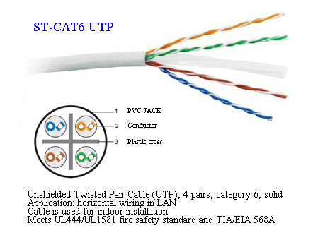 24AWG UTP Cat6, 568B, UL approvalled cable