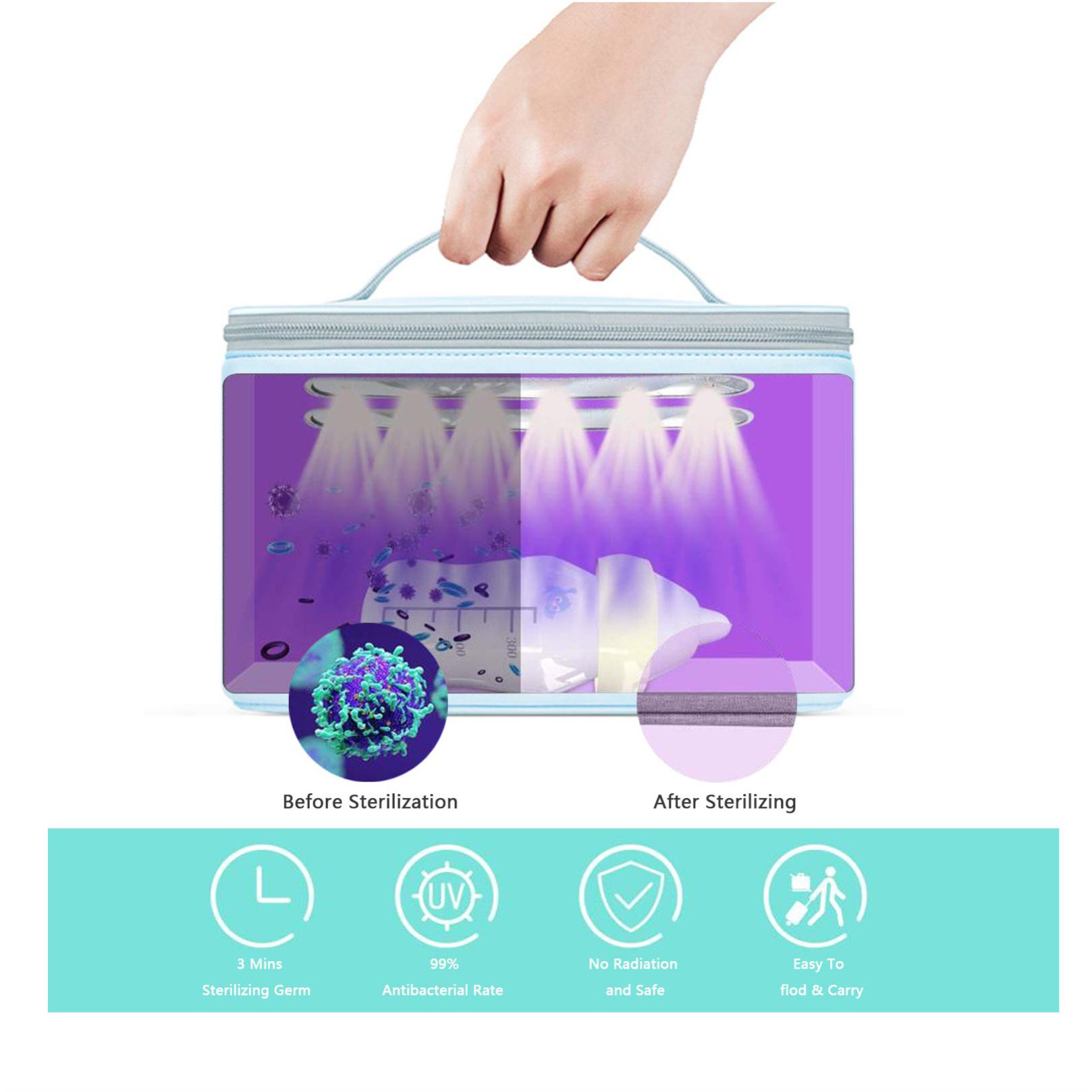 Strong Rapid: This LED bag has 24 counts UV-C Lights with a strong effect, provide 360-degree ,the pure 260-280nm wavelength which can effective to 99% cleaned, LED lamp bag only needs 3 minutes ,Very suitable for home use.