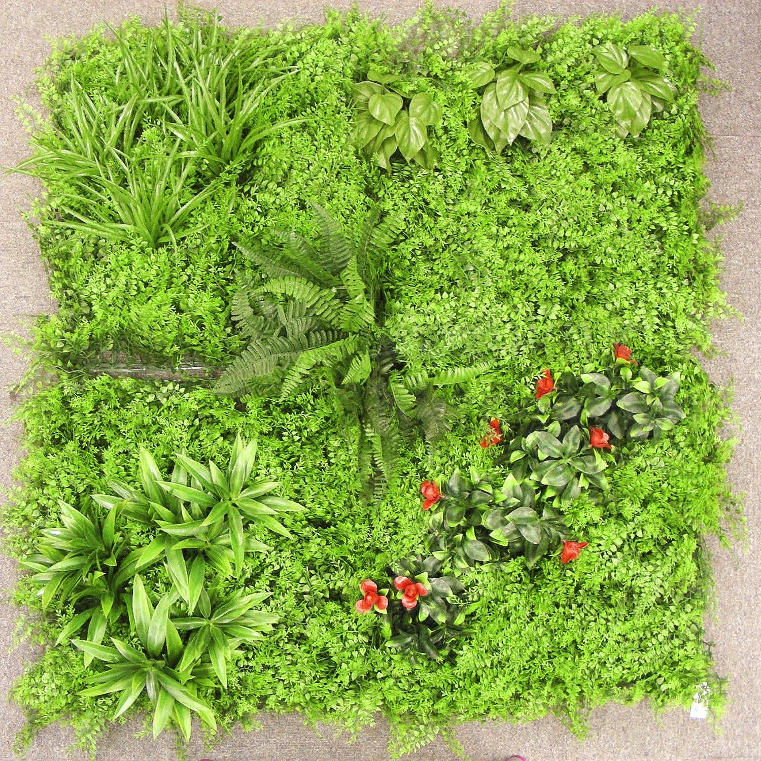 This is a faux garden wall filled lavishly with tropical ferns and highlighted by flowers. Since the plastic are UV stabilized, it can be fitted outdoor in vertical installation.