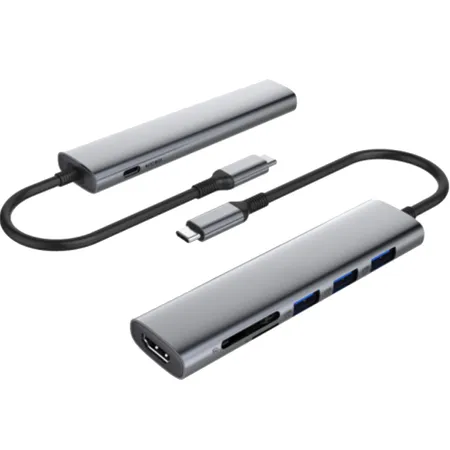 Maximize your connectivity with the 7-in-1 USB-C Hub with Power Delivery 100W, USB 3.0, 2 x USB 2.0 Ports, TF/SD Card Readers, and HDMI 4K/30Hz. This versatile hub offers a comprehensive range of ports to expand the capabilities of your USB-C device, making it an essential accessory for both work and play.