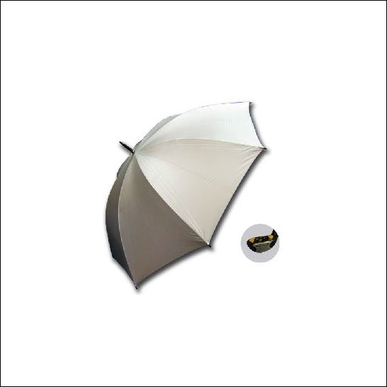 Umbrella with aluminium shaft, metal ribs and rib tips, adhesive closure band.