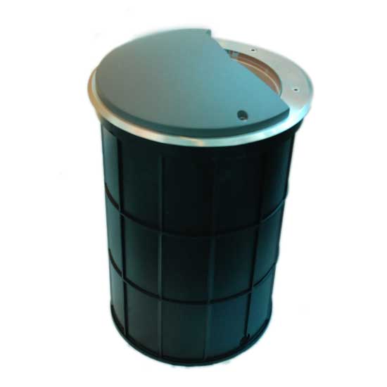 As shown is an underground light fitted with a plastic housing. The light source is securely shielded by tempered glass. The corrosion-resistant stainless steel frame can also stand outdoor wear and tear.