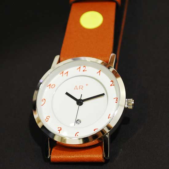 Displayed here is a timepiece coming with a decent design. The case made of sturdy stainless steel and alloy frames the big circular dial. Orange Arabic numeral time markers are clearly crafted on the dial, ensuring a clear time display. This wristwatch is a nice choice for both men and ladies.
