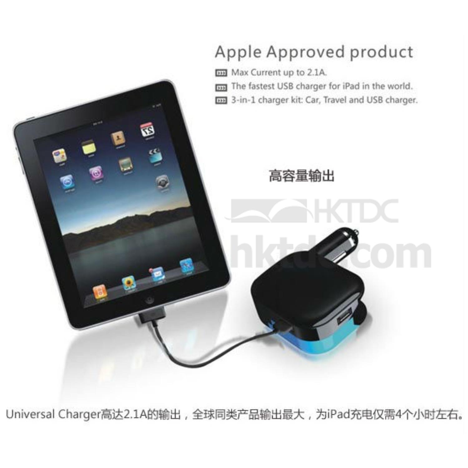 3-in-1 charger kit: car, travel and USB charger