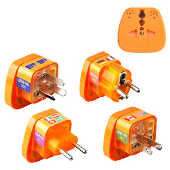 These adapters look interesting, mainly because of the orange colour, and the national flags on them. Unlike regular adapters that look black, these adapters have an orange colour, which is more fun to look at. Each of them is also painted with the national flags of the countries where the adapters can be applied. In this way, you can identify easily which adapters you should bring for your trip.