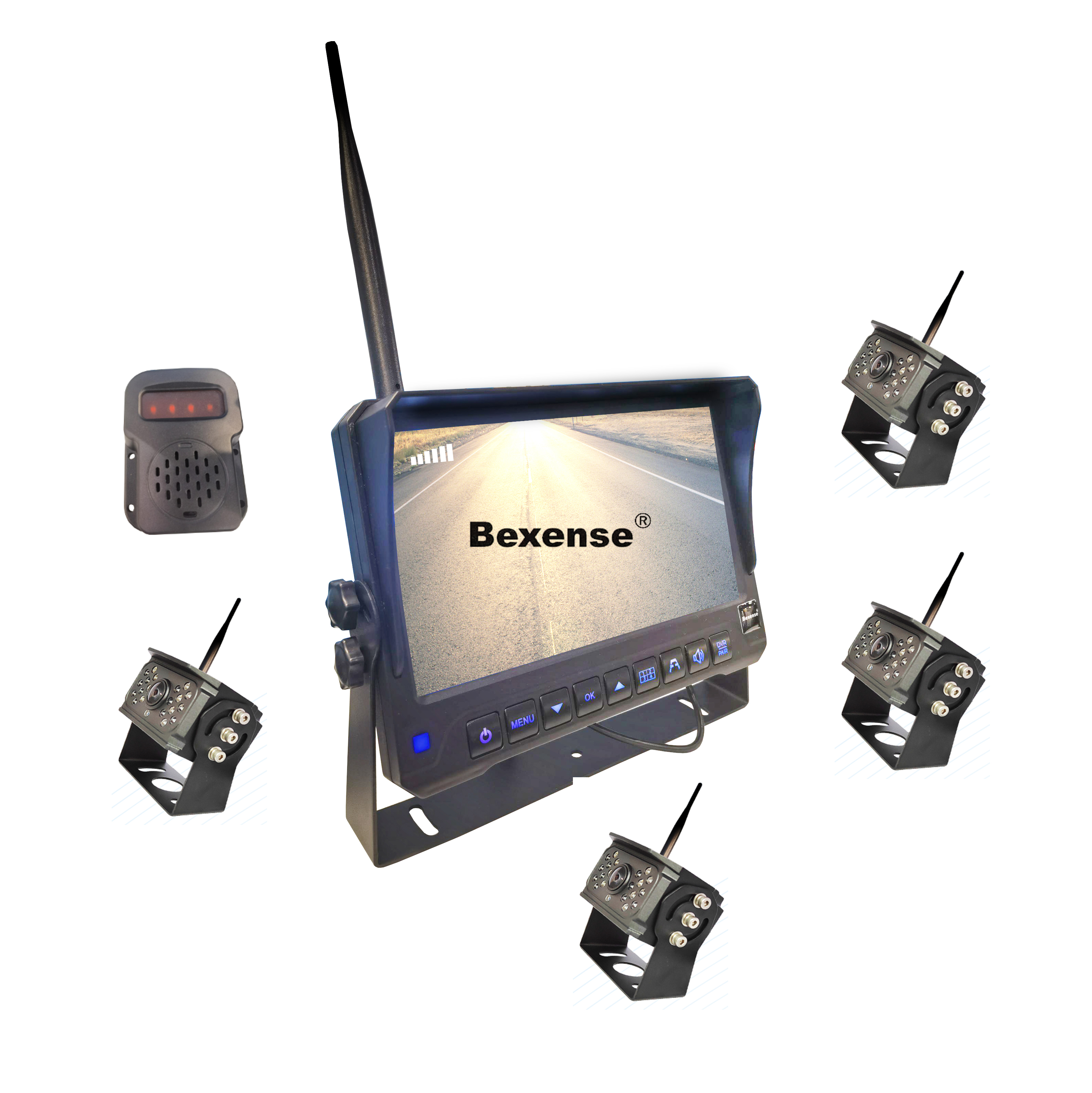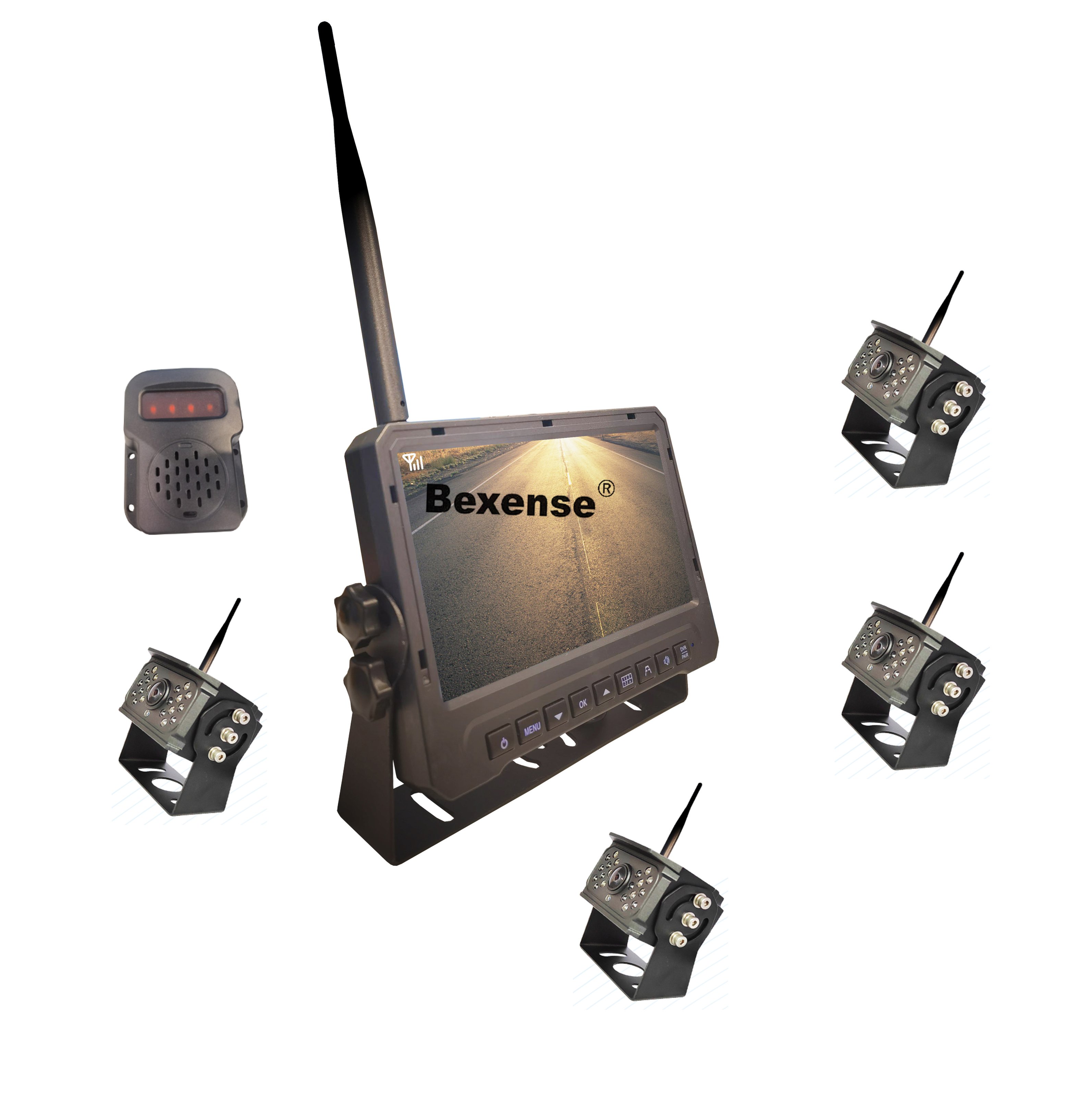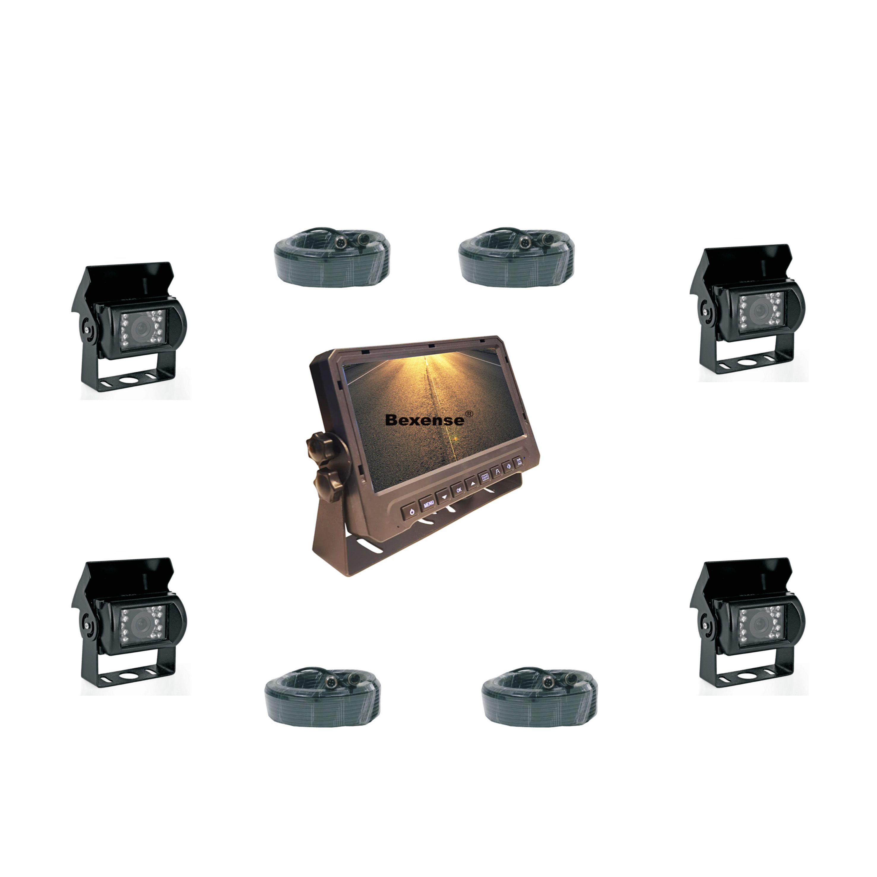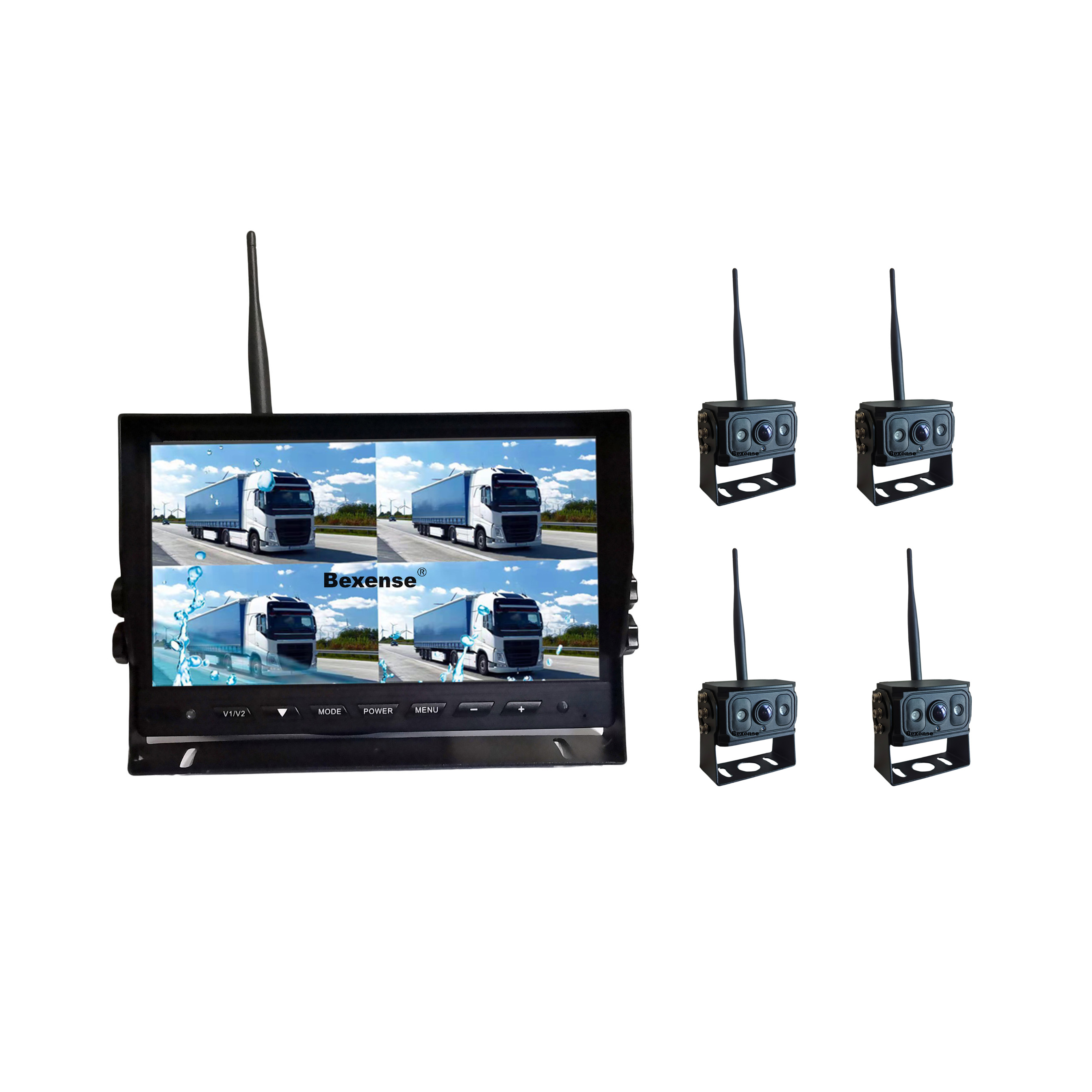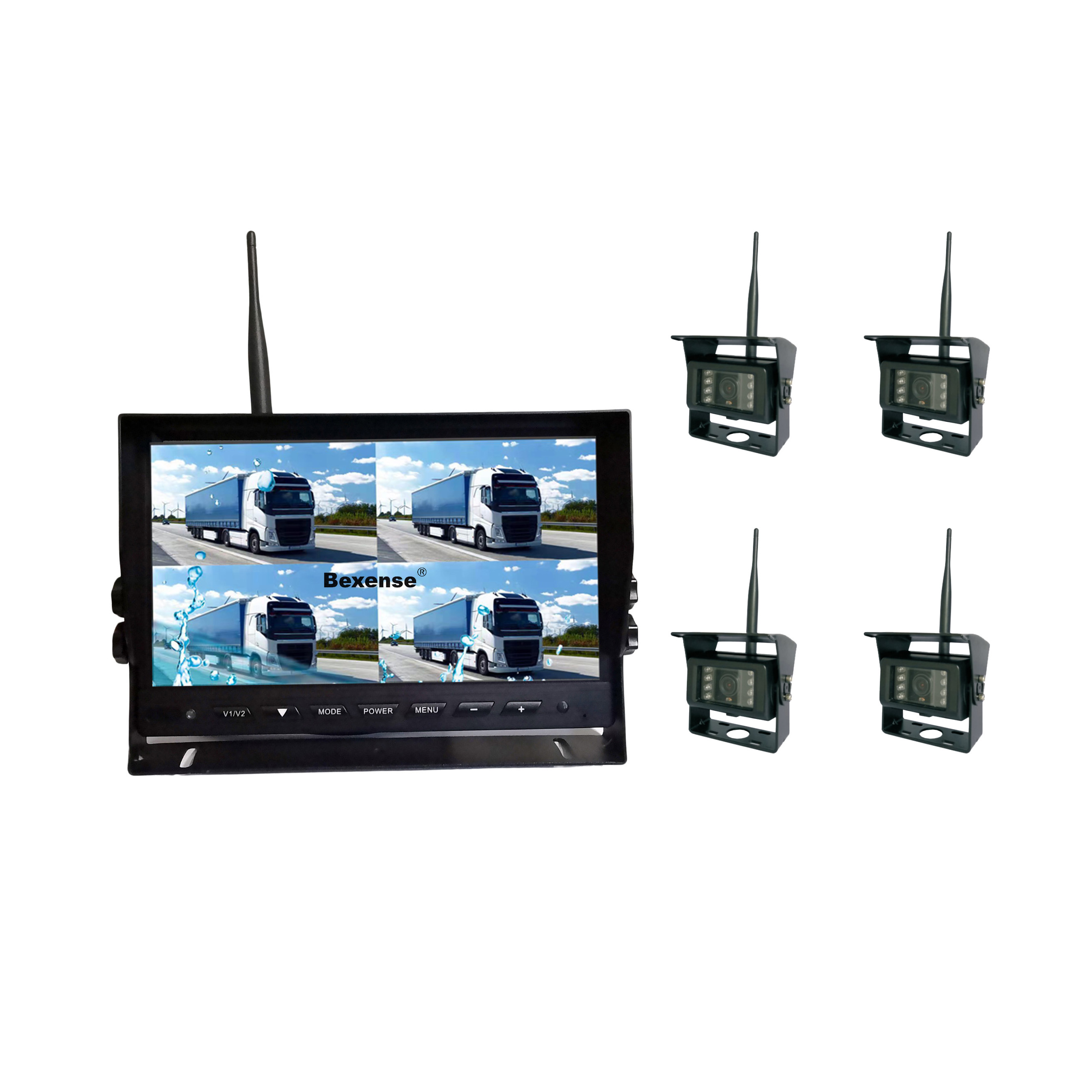 Reverse Camera, Quad Split Wireless Monitor, Wireless Monitor, Car AI Camera, Parking Sensor, Forklift Camera & Worklight Camera.