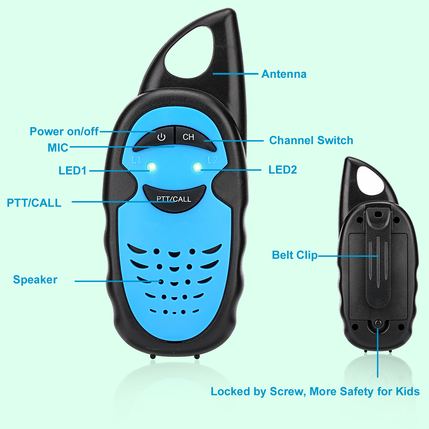 The walkie-talkie incorporates Push To Talk (PTT) so that as soon as you press the button you can start talking.