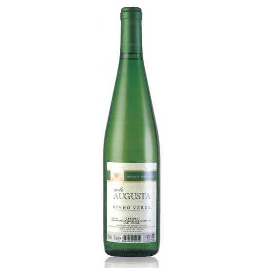 This is a bottle of Urbe Augusta Vinho Verde from Portugal. Made professionally, this white wine has a clear color and a fruity nose. This high quality table wine goes well with seafood dishes.