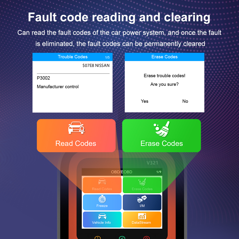 This professional OBD2 scanner can read and clear trouble codes, retrieve vehicle freeze frames, and check I/M readiness status. It supports real-time data streaming with graphical curves and performs specialized tests including oxygen sensor analysis, EVAP system checks, and battery startup testing. The device features quick-access shortcut keys (F1/DTC/BAT) and generates detailed inspection reports containing VIN, trouble code counts, voltage readings, and data stream records. With coverage for 55 major car brands, it accesses a database of 35,901 trouble codes through its 2.4-inch color display, while offering cloud printing functionality for convenient report sharing.