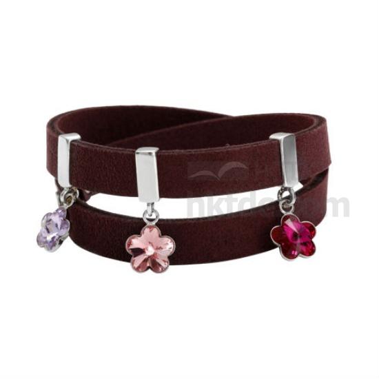 VICACCI Flower Leather Bracelet with Swarovski Crystal