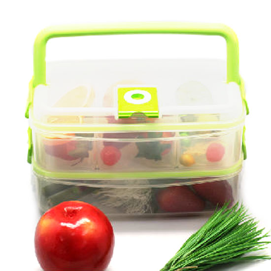 This is a two-layer vacuum seal food container that comes with a handle. It boasts a user-friendly design that makes it portable and easy to carry around. This airtight container can effectively prohibit bacteria growth, extending the shelf life of your food.