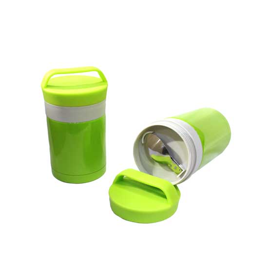 This is a vacuum food jar designed in bright green. It features a highly durable stainless steel structure with a sturdy handle on the cap. This jar can keep your food warm for a long time.