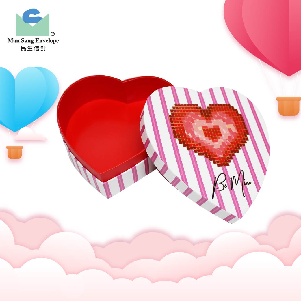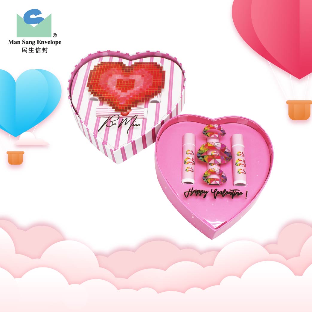 Package lipsticks or other cosmetics with this heart shaped gift box. It is adorned with pink stripes and has a matching lid with a pixel heart pattern. This packaging box provides safe and organized storage to contents inside and is ideal for Valentine’s Day or other special occasions.