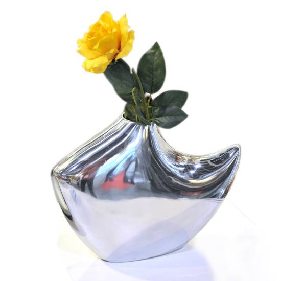 Featured is a vase made of aluminium, having a unique shape design, with a polished finish, suitable for modern homes use.