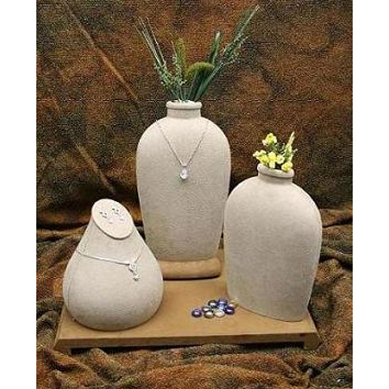 The necklace stands stand out with unique vase-shaped designs. They feature sleek styling and their plain layouts make them easy matches for necklaces. The tops of these stands are trimmed with flowers for enhanced appeal.
